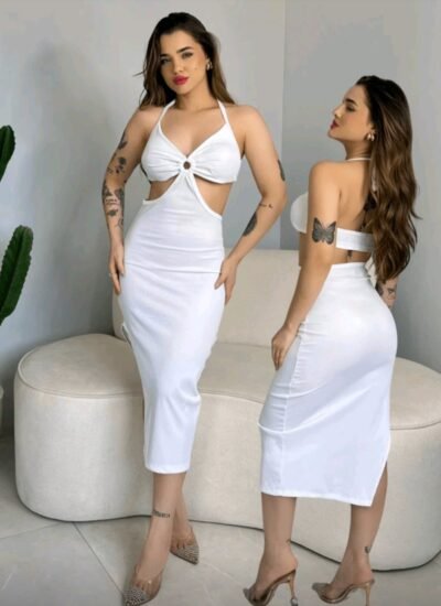 Vestido colado com gravatinha